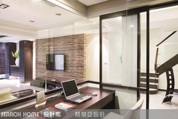 想要讓空間有所區隔卻又不想犧牲開闊的視野?使用玻璃隔間就對了!在客廳與書房之間,建議可使用玻璃隔間,不但可維持書房獨立,也能讓空間感放大,用對材質就能解決難題。