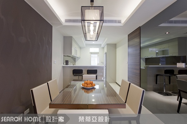 有時因格局受限,像是書房、餐廳這些空間坪數難免較小,藉由染色鏡面的使用,如灰鏡與茶鏡,就能因鏡面反射效果而讓空間感放大。